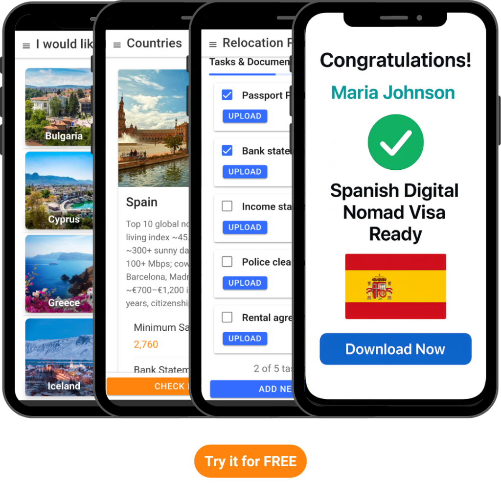 The app guides you through every part of the process — from checking visa eligibility to final submission. Each step is clear, structured, and easy to follow. Whether you’re applying for a digital nomad visa, student visa, or work visa, the app keeps your progress organized in one place.